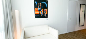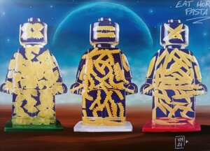 Attraverso il colore e la composizione, ho trasformato lo sfondo in un elemento narrativo, che dialoga con la figura centrale e ne amplifica il messaggio. Il risultato è un’opera che riflette sulle dinamiche del consumismo, dell’iconografia pop e della cultura dell’apparenza, reinterpretandole in una chiave critica e suggestiva.